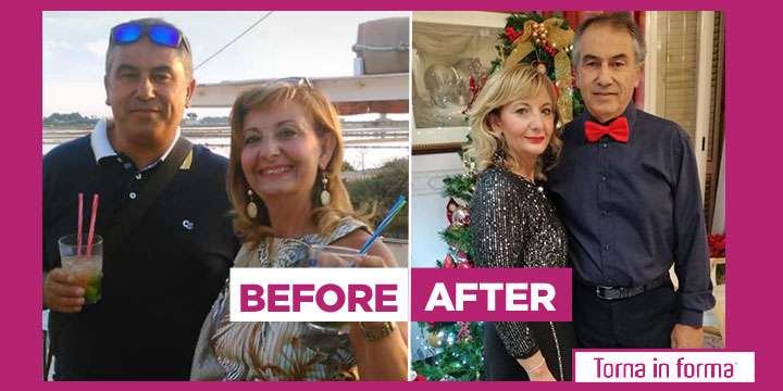 Together, thanks to the Torna in forma programme and the support of Erboristeria Lungavita in Mazara del Vallo (TP), they have managed to lose 9 kg (her) and 24 kg (him).