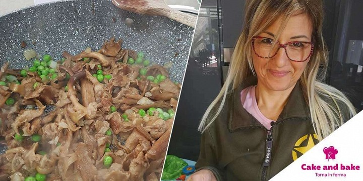 Spelt pasta with mushrooms and peas